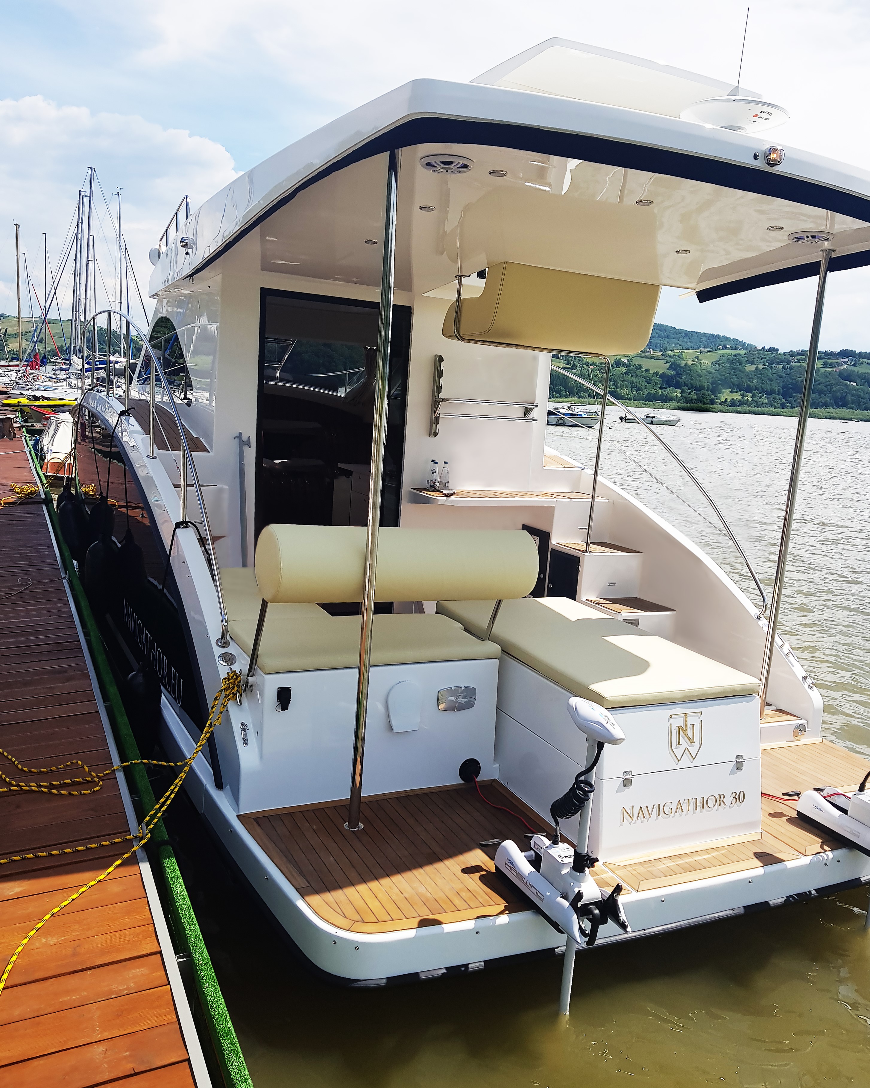 Usiądź wraz z osobą towarzyszącą za sterami Navigathora 30. Zabytki, dźwięki i zapachy przybliżają Cię do natury, dzięki zastosowaniu flybridge w górnej części pokładu.Widok 360 stopni pozwoli Ci komfortowo i bezpiecznie kontrolować przebieg podróży. Dzięki otwartej przestrzeni możesz podziwiać otoczenie i czuć się z nim bardziej związany.