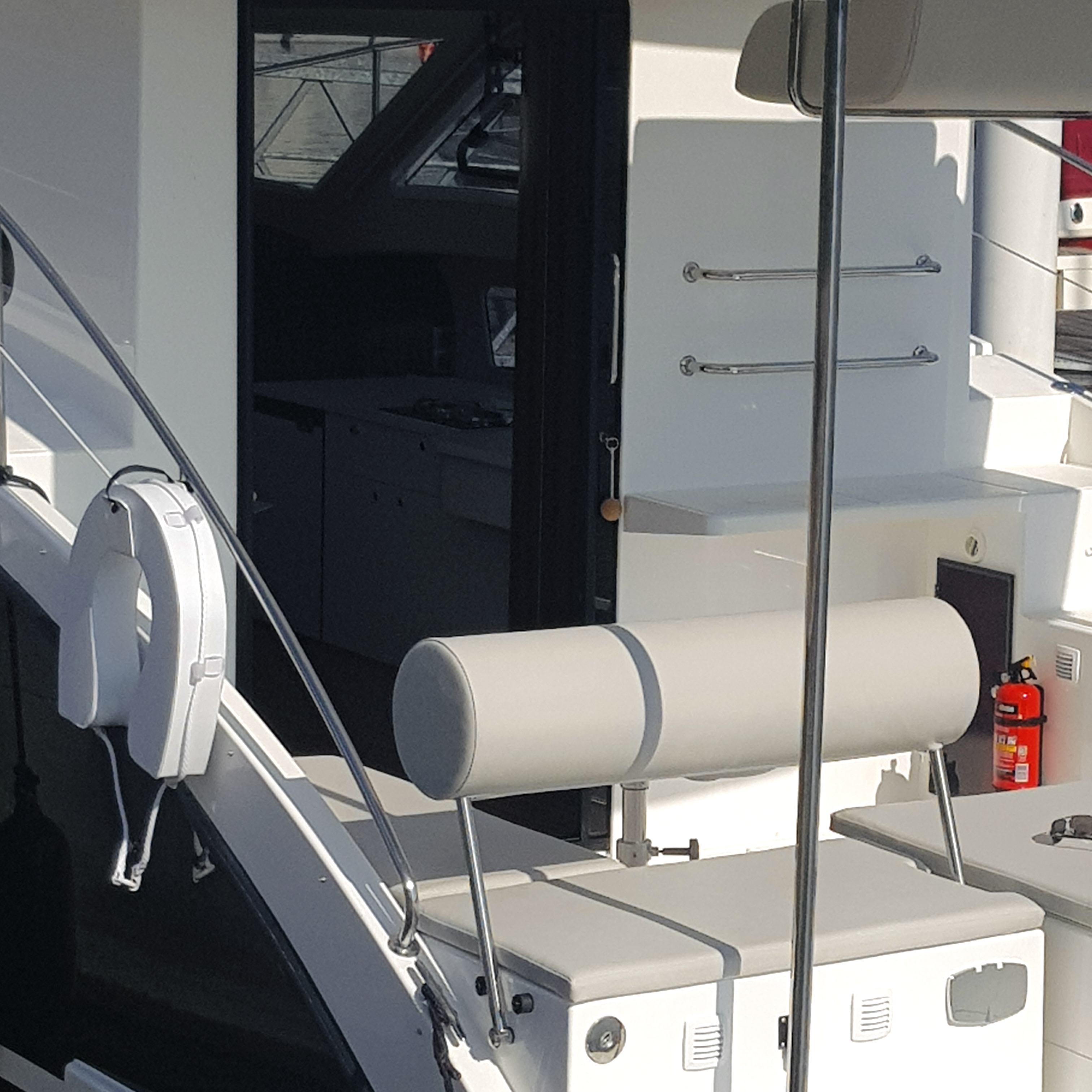 Drzwi przesuwne firmy KOTNIZ zagwarantują komfort oraz bezpieczeństwo użytkowania Twojego jachtu. Światłoprzejście to blisko 90cm szerokości. Teraz komunikacja pomiędzy messą (salon główny) a kokpitem (część zewnętrzna) jest prosta i wygodna. Dodatkowo zastosowaliśmy szkło hartowane grubości 6mm w kolorze grey, system strukturalny profili z bezpośrednio wklejoną szybą co polepsza wygląd.