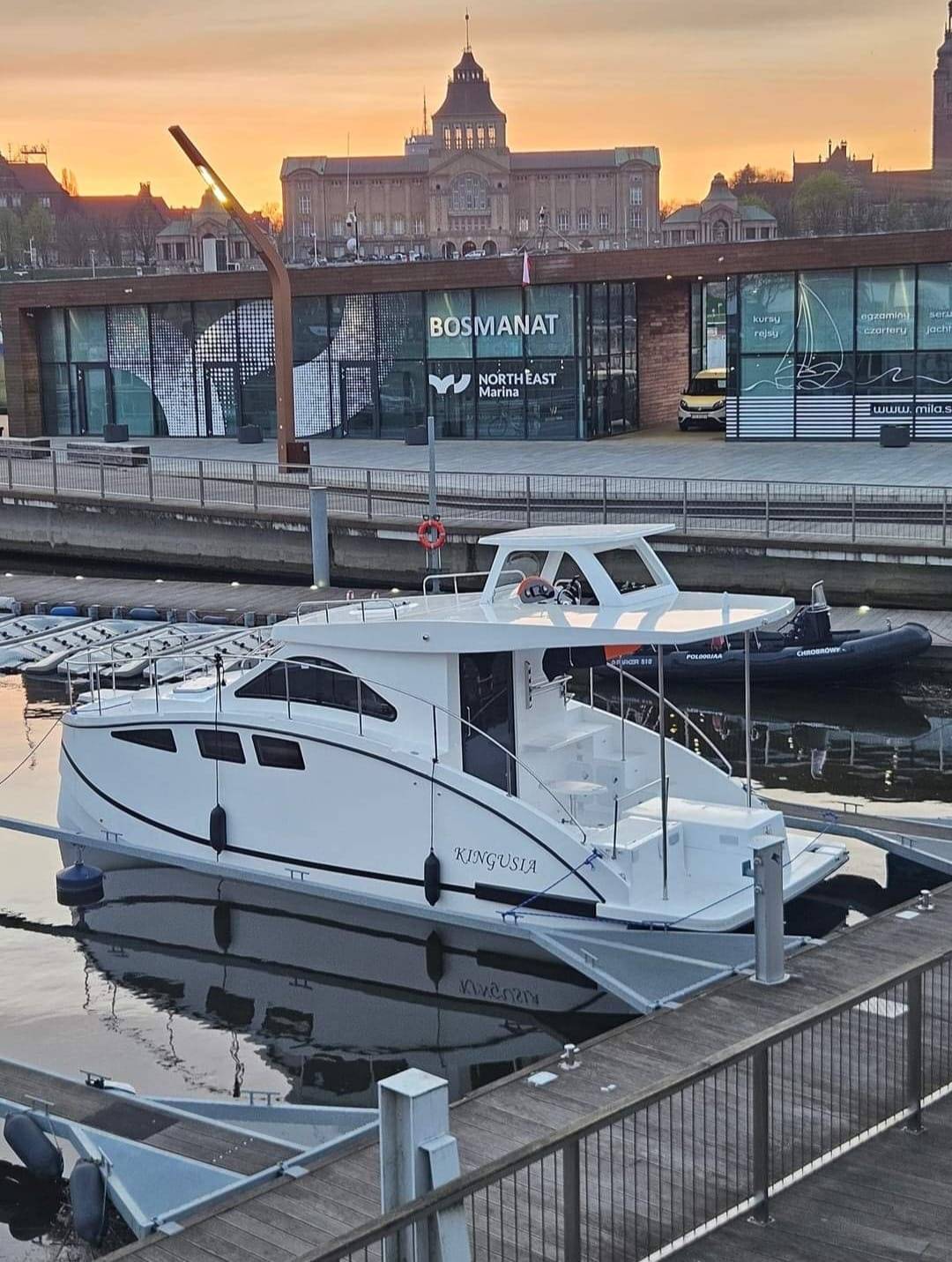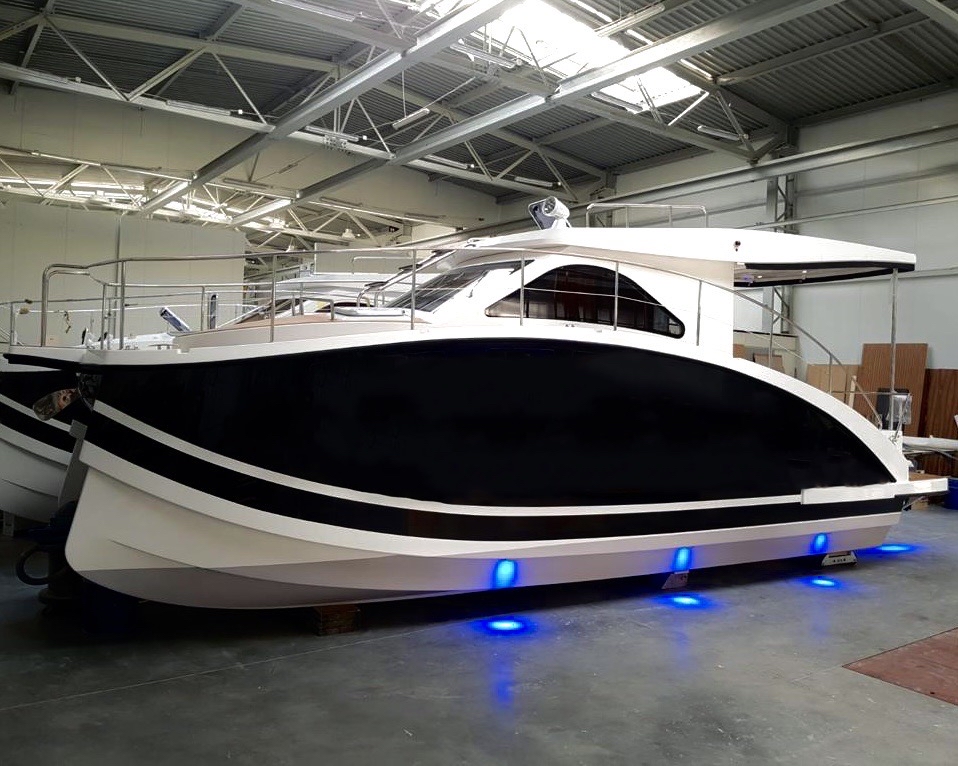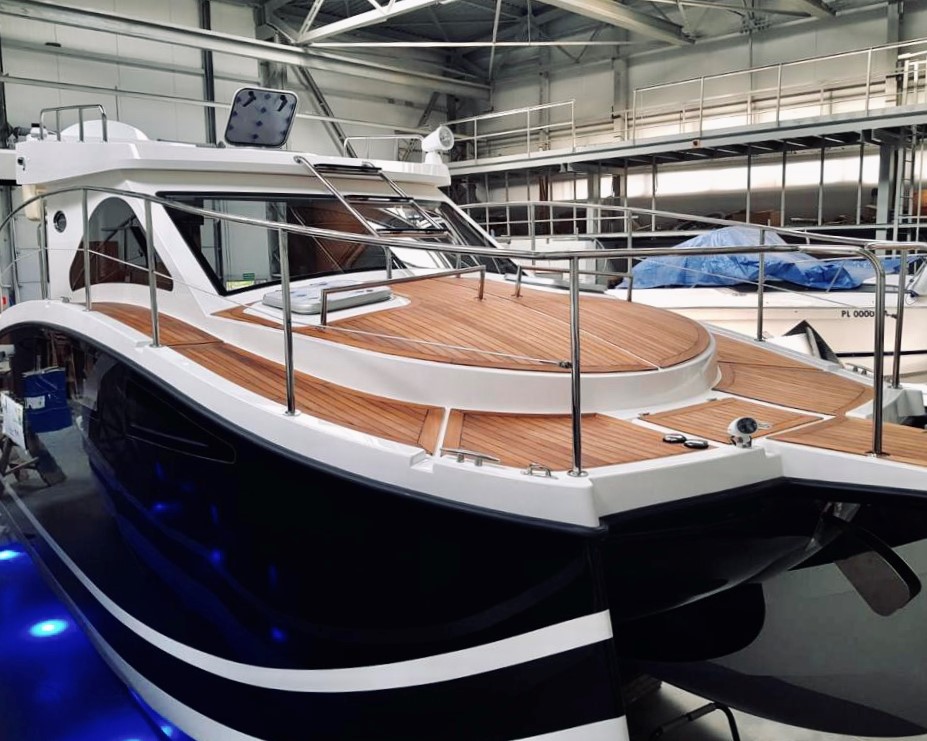 interpretacja nowoczesnego jachtu oraz podpis Naszej stoczni.