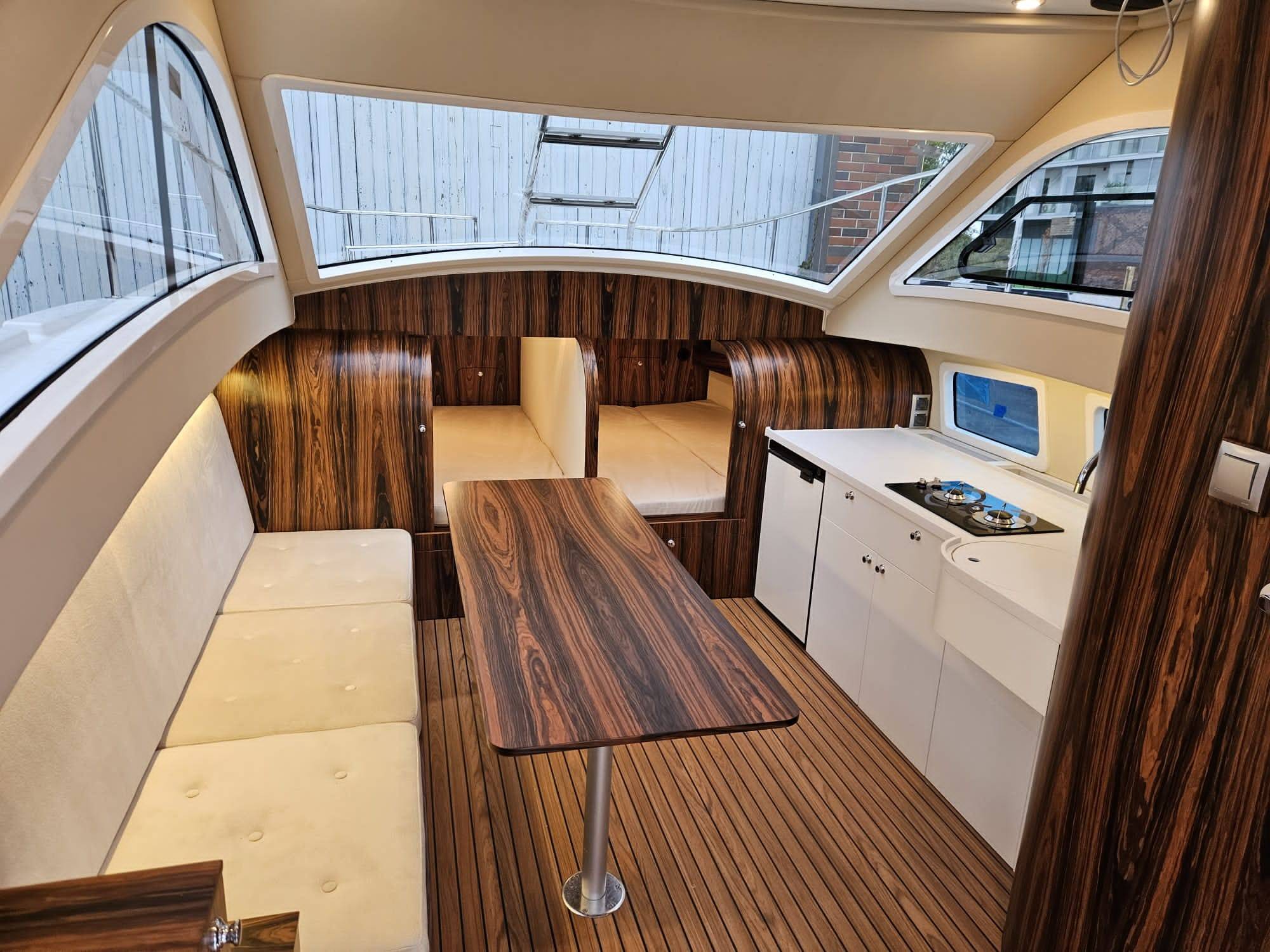 Zainspirowani nowoczesnymi aranżacjami wnętrz stworzyliśmy powierzchnię mieszkalną jachtu, która łączy w sobie funkcjonalność oraz spontaniczną energię wyrażoną nieszablonowymi kształtami zabudowy. Całą przestrzeń wykorzystaliśmy wyłącznie w celach użytkowych. Poczuj się jak w domu odkrywając walory użytkowe Naszego jachtu.