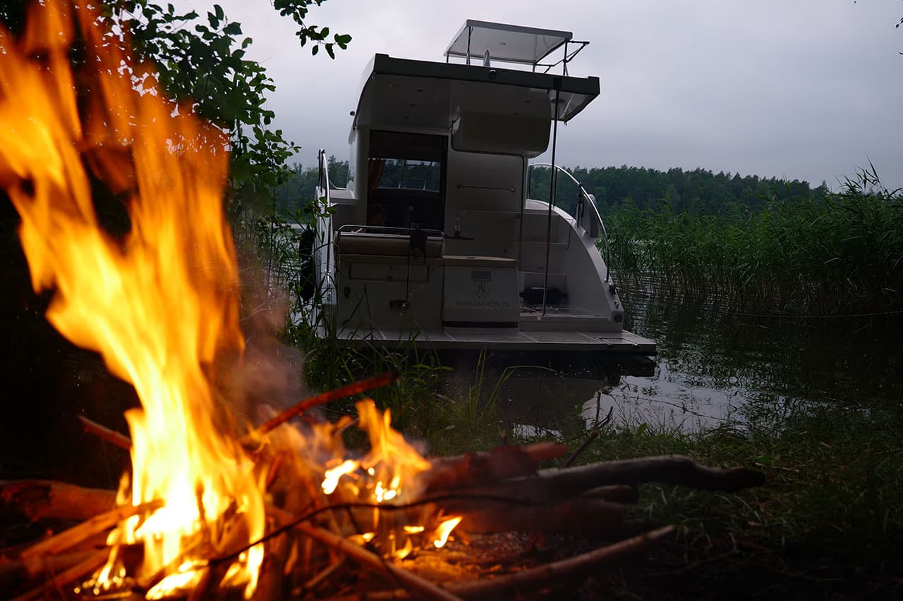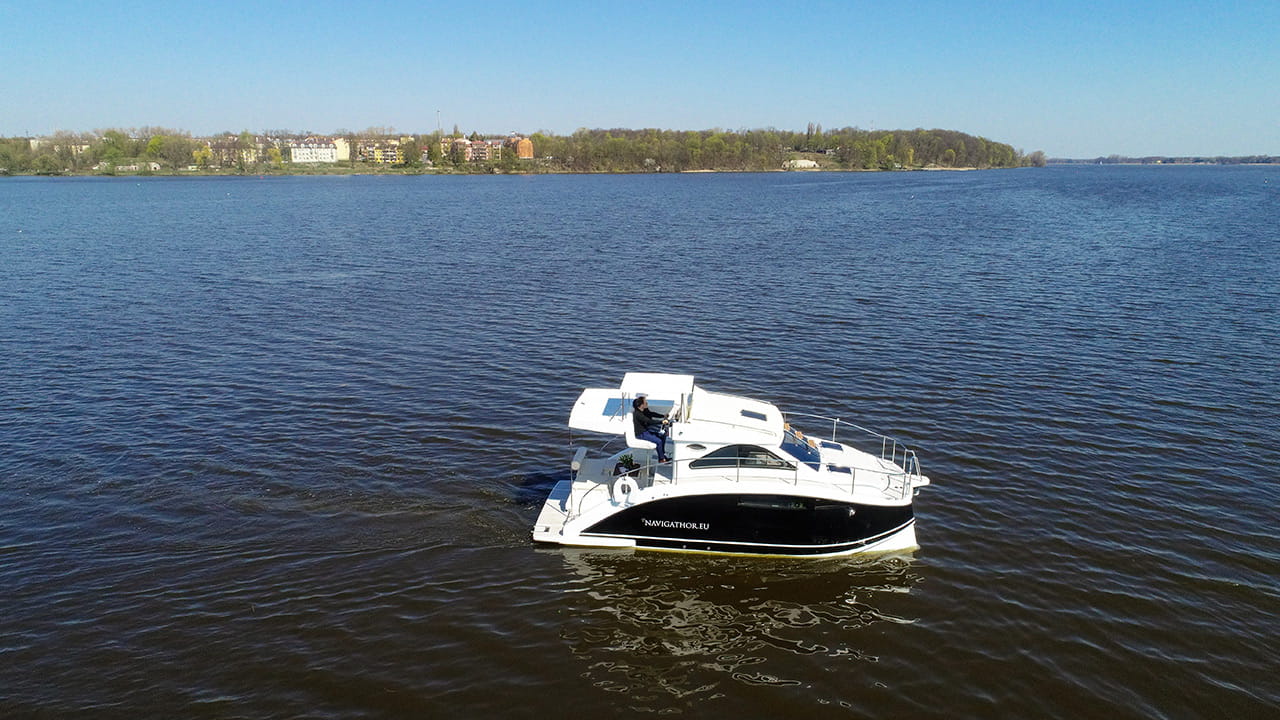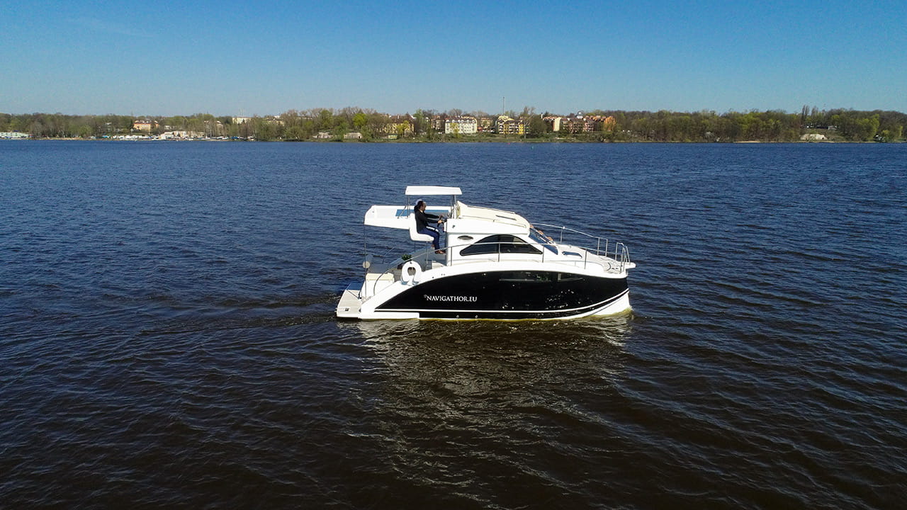 Usiądź wraz z osobą towarzyszącą za sterami Navigathora 30. Zabytki, dźwięki i zapachy przybliżają Cię do natury, dzięki zastosowaniu flybridge w górnej części pokładu.Widok 360 stopni pozwoli Ci komfortowo i bezpiecznie kontrolować przebieg podróży. Dzięki otwartej przestrzeni możesz podziwiać otoczenie i czuć się z nim bardziej związany.
