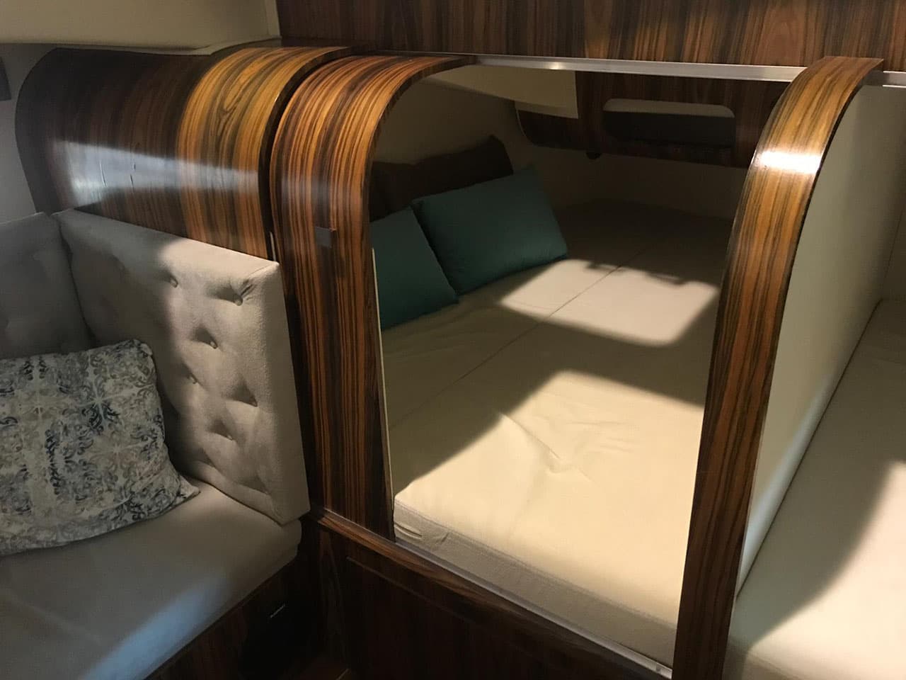 Zainspirowani nowoczesnymi aranżacjami wnętrz stworzyliśmy powierzchnię mieszkalną jachtu, która łączy w sobie funkcjonalność oraz spontaniczną energię wyrażoną nieszablonowymi kształtami zabudowy. Całą przestrzeń wykorzystaliśmy wyłącznie w celach użytkowych. Poczuj się jak w domu odkrywając walory użytkowe Naszego jachtu.