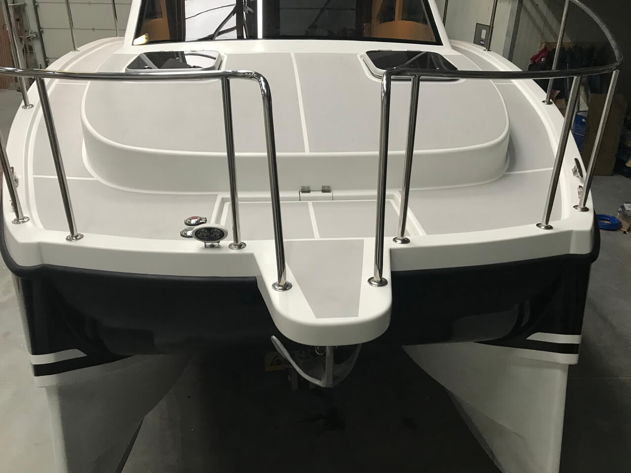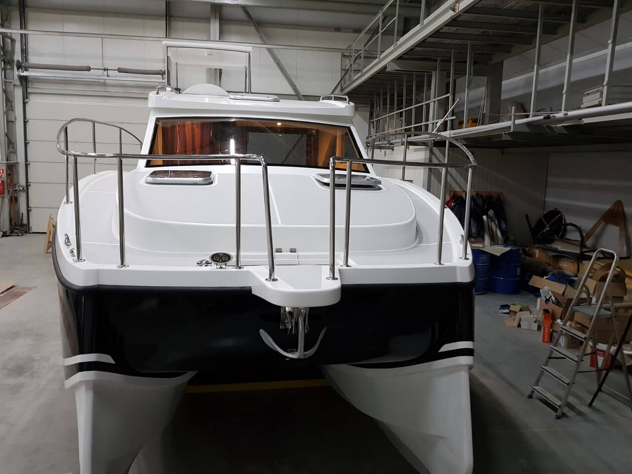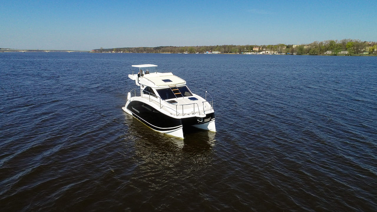 Nasze 2 kadłuby zostały zaprojektowane w taki sposób aby zagwarantować jak najmniejsze odczucia przechyłów przy złych warunkach pogodowych. Konstrukcja jest unikalna w swoim rodzaju. W celu zagwarantowania dodatkowego bezpieczeństwa stępki kadłuby zostały okute 3 milimetrowymi teownikami. Możesz czuć się bezpiecznie w przypadku gdy na coś wpłyniesz.