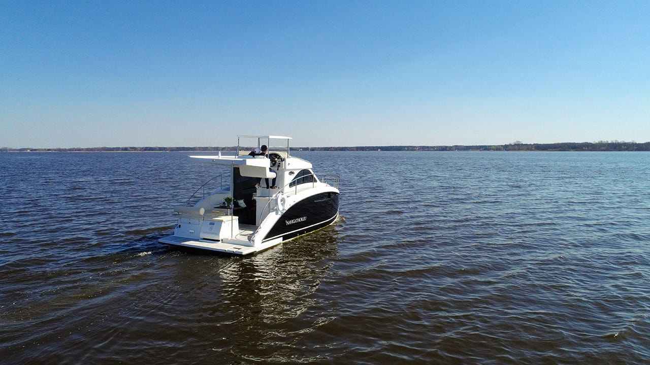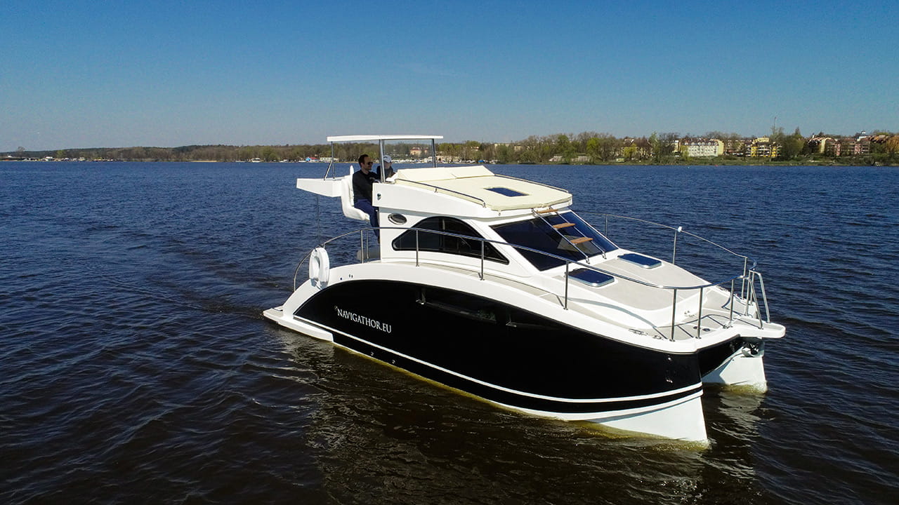 Navigathor 30 to nowy houseboat na 2 kadłubach. Jego ponadczasowa konstrukcja prowadzi oko wzdłuż płynnych linii kadłuba, ukazując jej całe piękno. Zachwyca a jednocześnie budzi pragnienie posiadania.