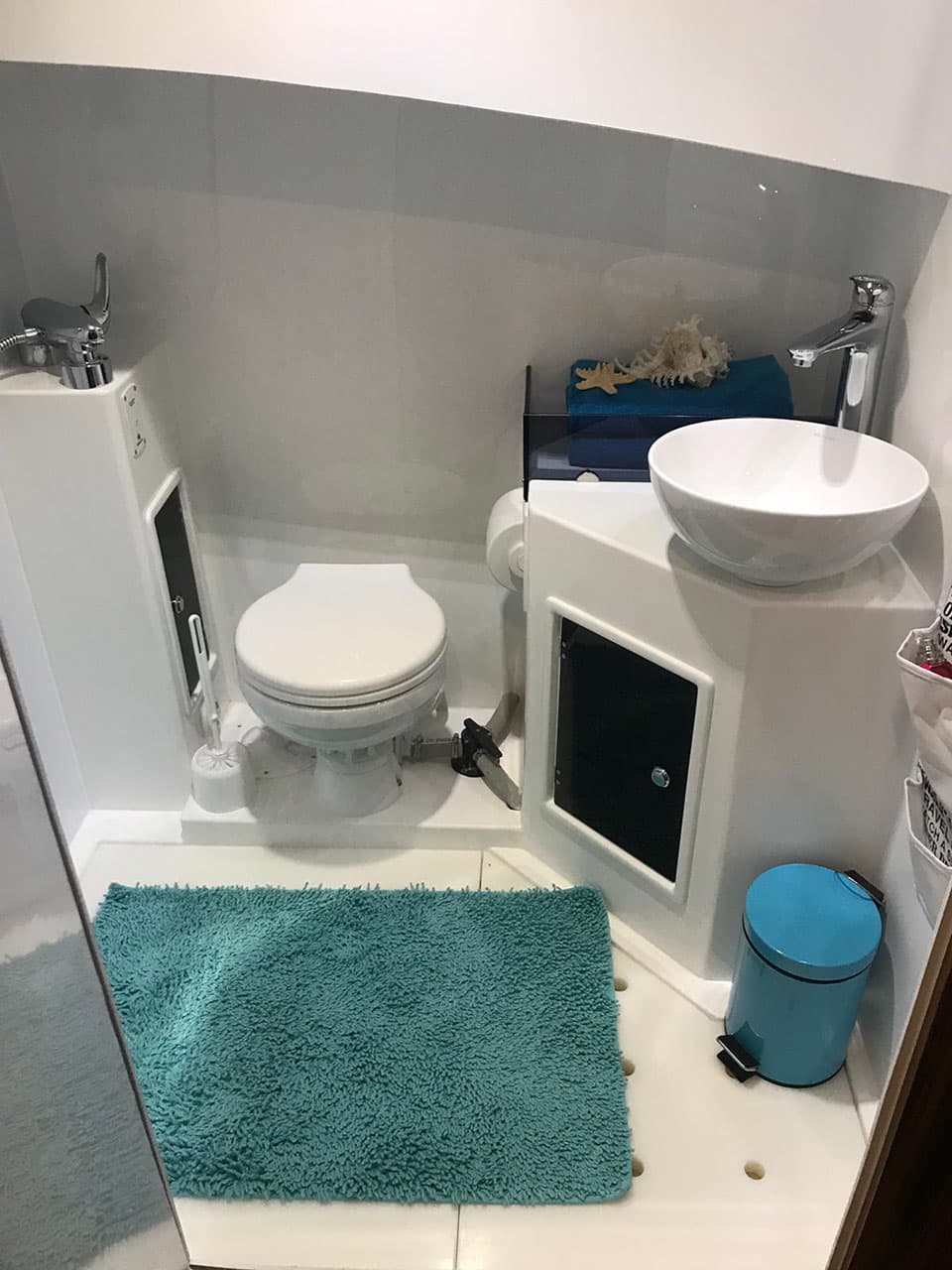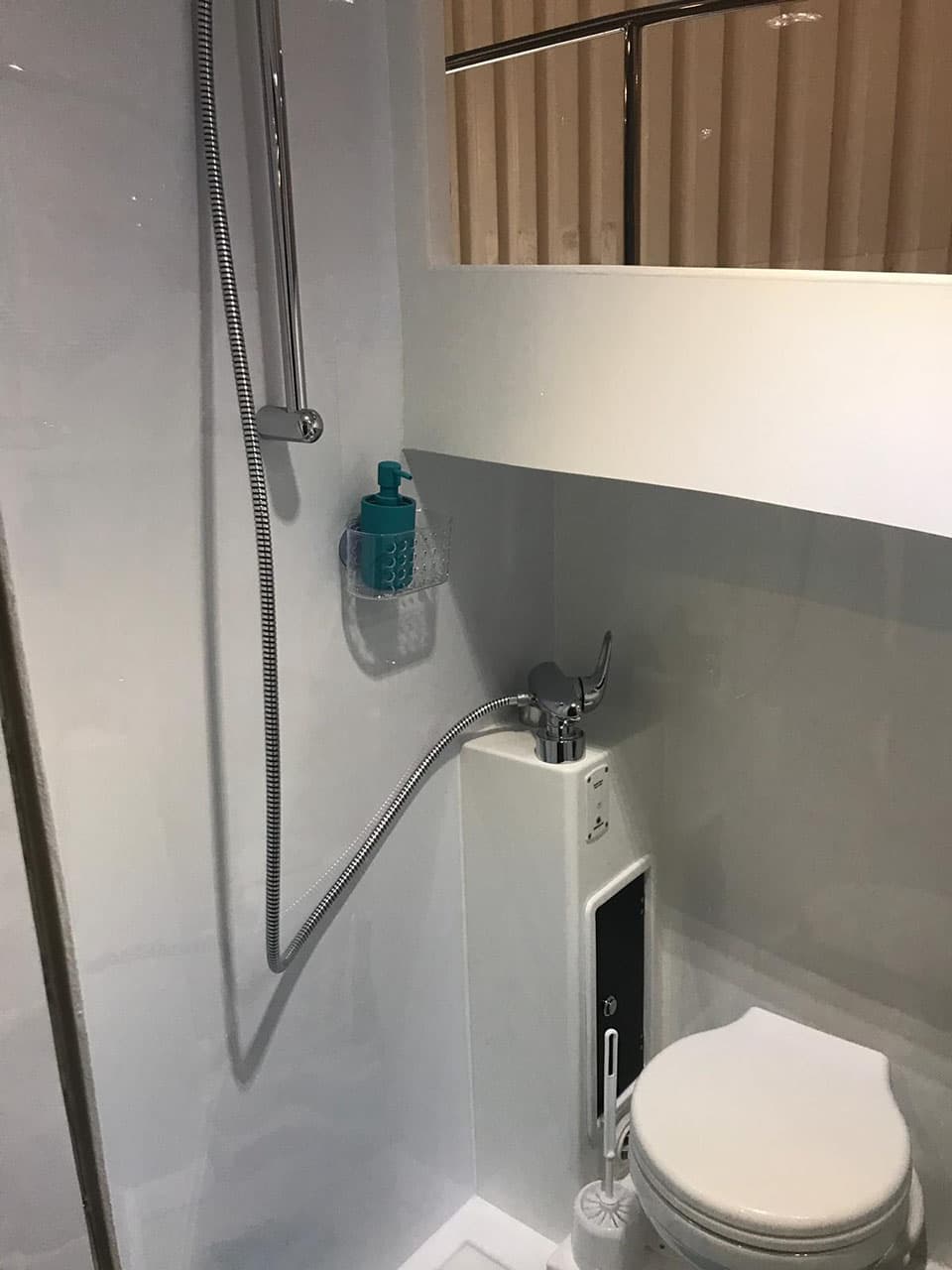 To znak rozpoznawczy NAVIGATHORA 30. Duża, komfortowa specjalnie zaprojektowana łazienka z wydzieloną częścią sanitarną oraz częścią kąpielową sprawi że w końcu poczujesz się jak w domu. Część toaletowa posiada szafkę wraz z umywalką nablatową , część kąpielowa niezależny prysznic.
