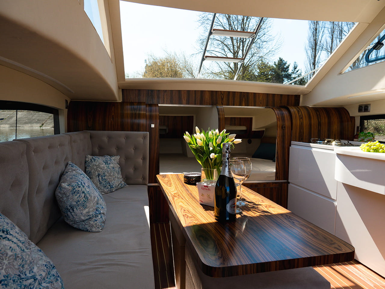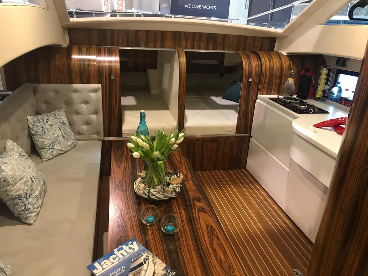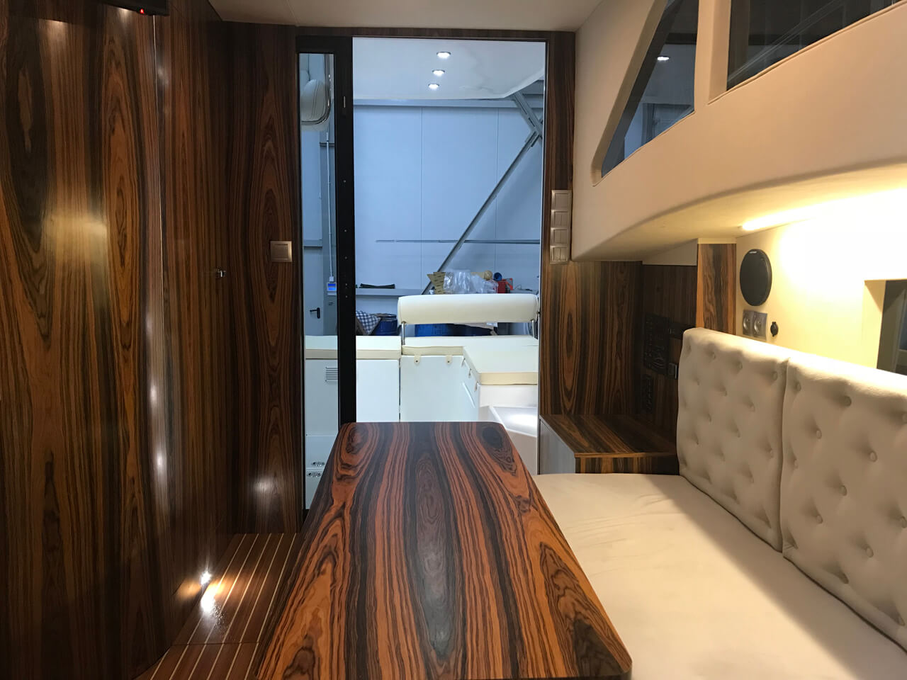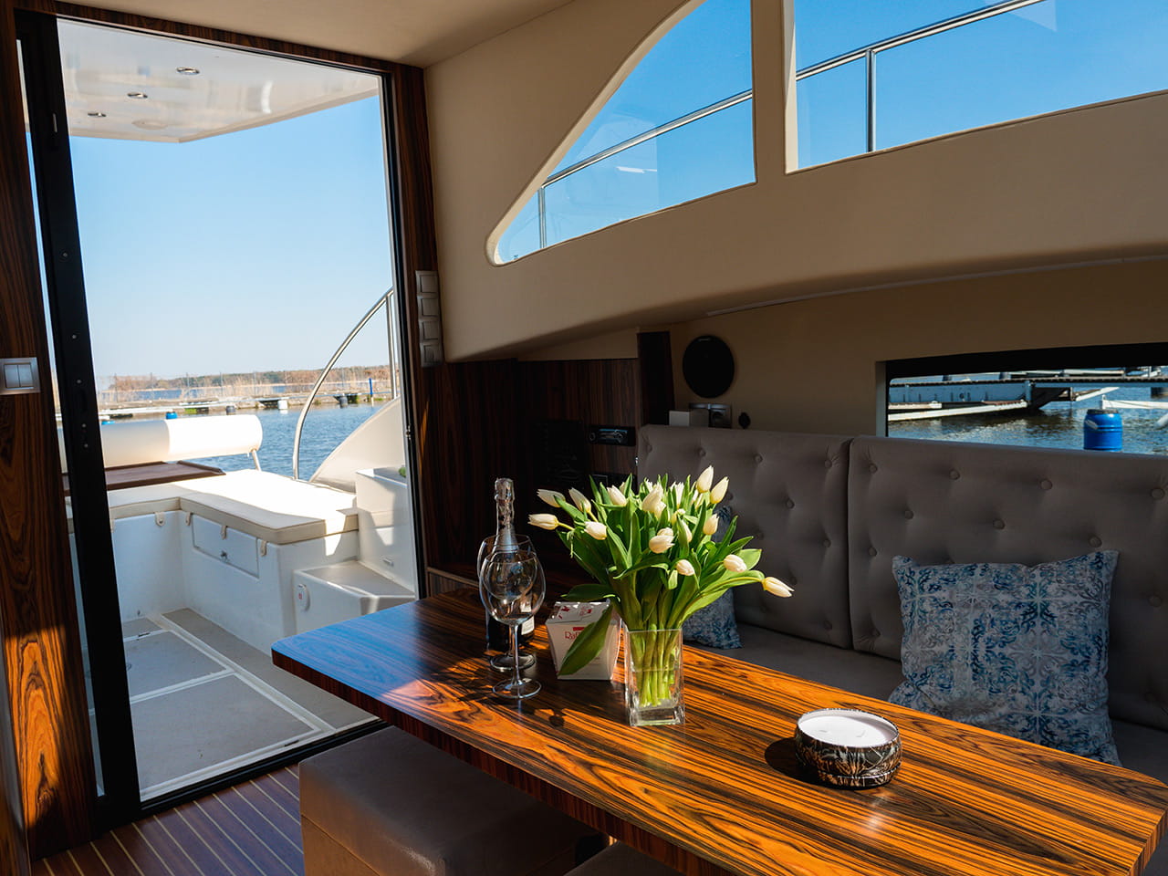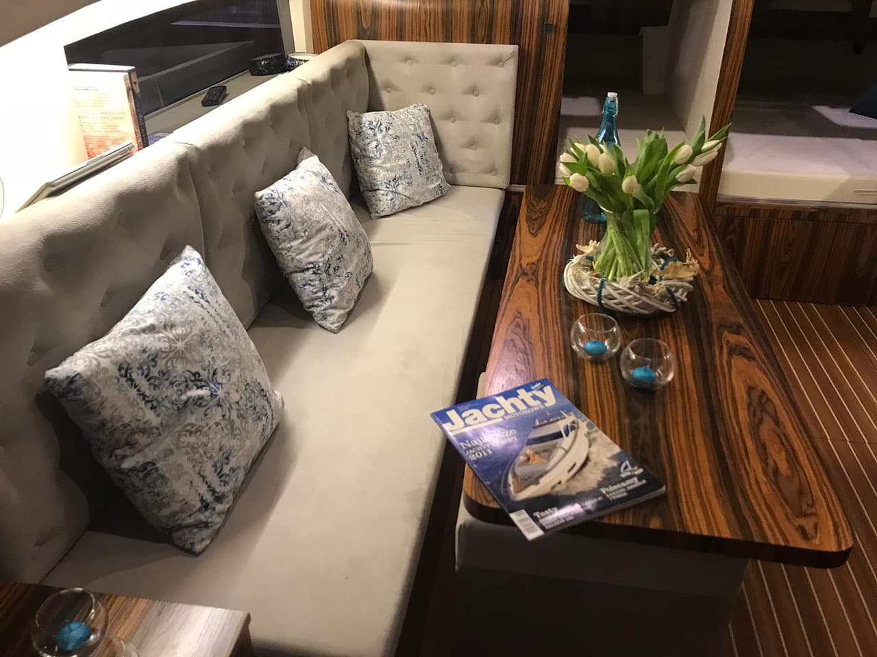 Krok wewnątrz i cechy tego wyjątkowego jachtu przywołują Twoją uwagę do szczegółów. Niepowtarzalne obłe kształty elementów, delikatne linie – to wszystko po to, aby zrobić coś więcej niż w standardowych jachtach.